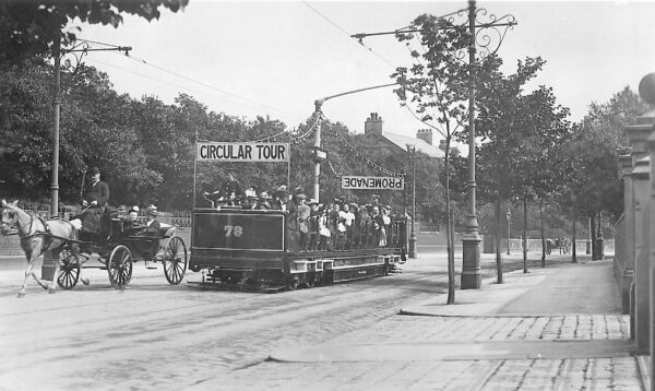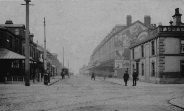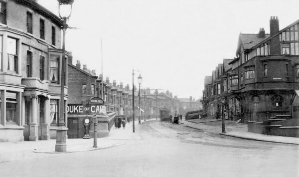 Warbreck Road, later renamed Dickson Road, looking south from outside the Duke of Cambridge on the left, now the site of the Gynn pub. c.1922