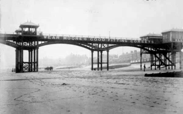 Originally called the South Pier, Central Pier opened on 30th May 1868. The first pile was screwed in July 1867.  Built from wrought iron and timber, it had a length of 1518 feet, the main pier being 1118 feet and the jetty 400 feet. Built by the firm of Robert Laidlaw and designed by J.J. Mawson.