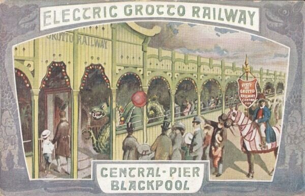 The Electric Grotto Railway was built on Central Pier by Messrs. Meinhardt in 1904