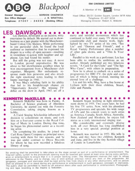 The Hippodrome closed in 1962, re-modelled, then the ABC Theatre opened on the 31st of May 1963 with the summer season stage show “Holiday Carnival” starring Cliff Richard and The Shadows.