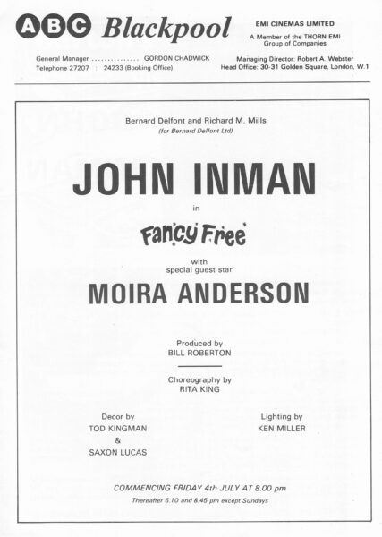 The final summer season show was in 1980 starring John Inman in ‘Fancy Free’.