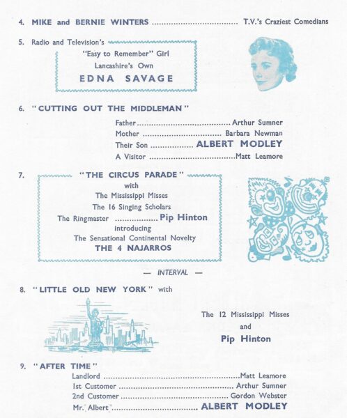 Albert Modley, Edna Savage, Mike and Bernie Winters