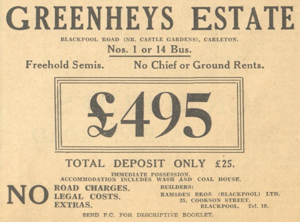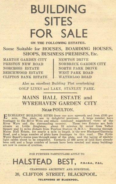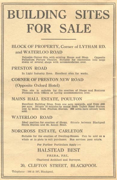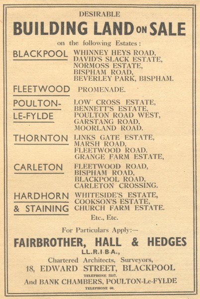 Land For Sale including plots in Blackpool, Thornton, Carleton, Poulton and Staining – 1935