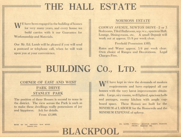 The Hall Estate Building Co. Ltd Blackpool – 1935
