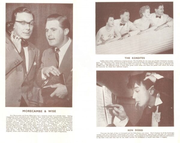 Morecambe & Wise, Kenny Baker, Ken Dodd, The Kordites, Jimmy Clitheroe, Peter Webster, Joy Harris, Rita Shearer, Harold Norway, Bert Myers and The Orchid Lovelies.