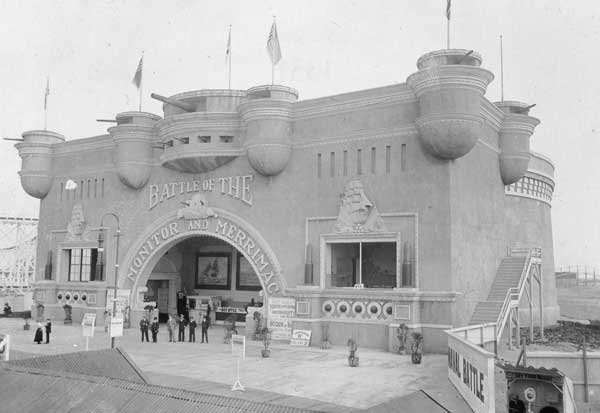 The “Spectatorium” which showed massive shows of the Battle of Chesapeake Bay, between the ships Monitor and Merrimac
