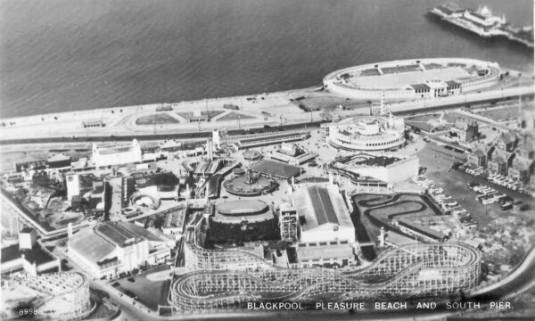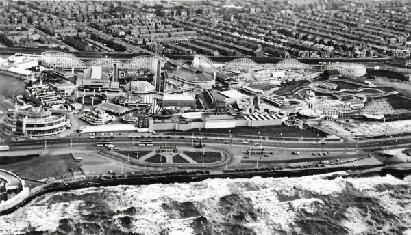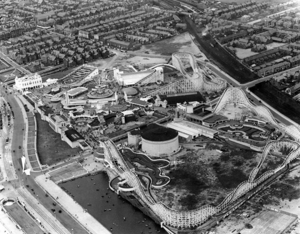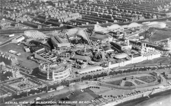 Aerial view of the Pleasure Beach – with the tramlines now going past the Pleasure Beach