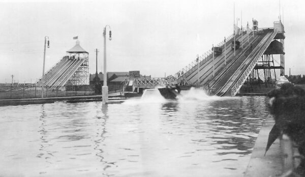 This ride was 65 feet high and had a 237 foot slope to the lake at the bottom.