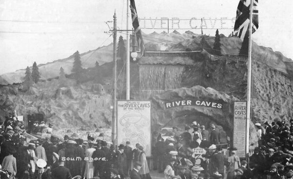 The River Caves ride was installed at the park in 1905. Described as a ‘dark ride’ involving a boat trip through “cave-like” tunnels, each incorporating a different theme.