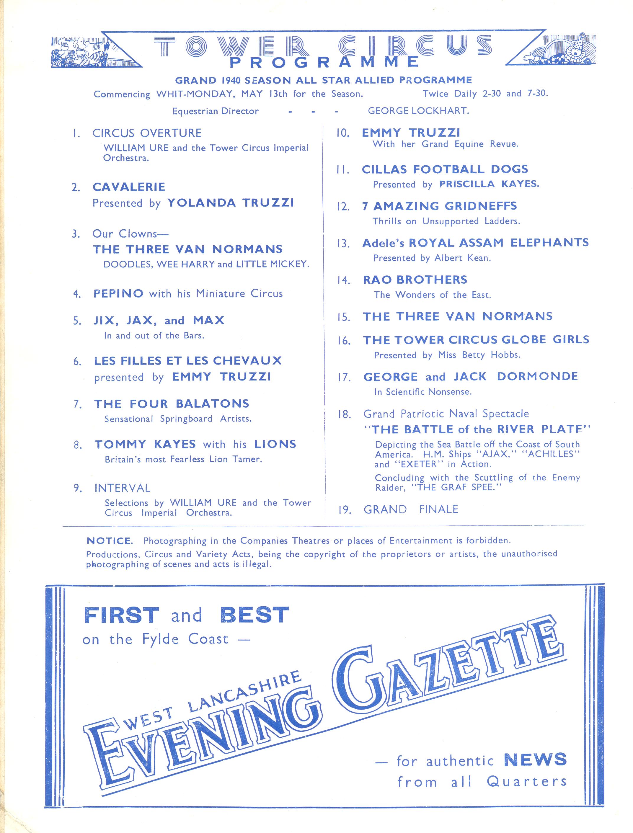Tower Circus Programme – April 7th 1941 for 2 weeks